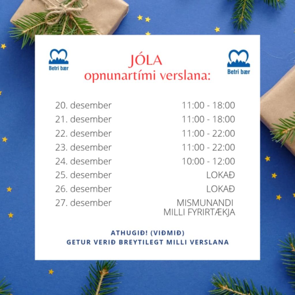 Hér má sjá opnunartíma verslunar og þjónustu í Reykjanesbæ.
